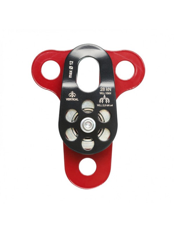 Блок-ролик двойной стальной с подшипником - предназначен для использования в полиспастных системах. Допускает использование как одинарной, так и двойной веревки. Выпускается с подшипником. Имеет третью разделительную щеку с нижним отверстием под карабин, и тремя верхними отверстиями. Дополнительные отверстия позволяют присоединить еще одни или два ролика, зажим в качестве блокиратора обратного хода или закрепить конец веревки, участвующей в полиспастной системе. Также можно объединять ролики для передвижения грузов по двойным горизонтальным перилам.