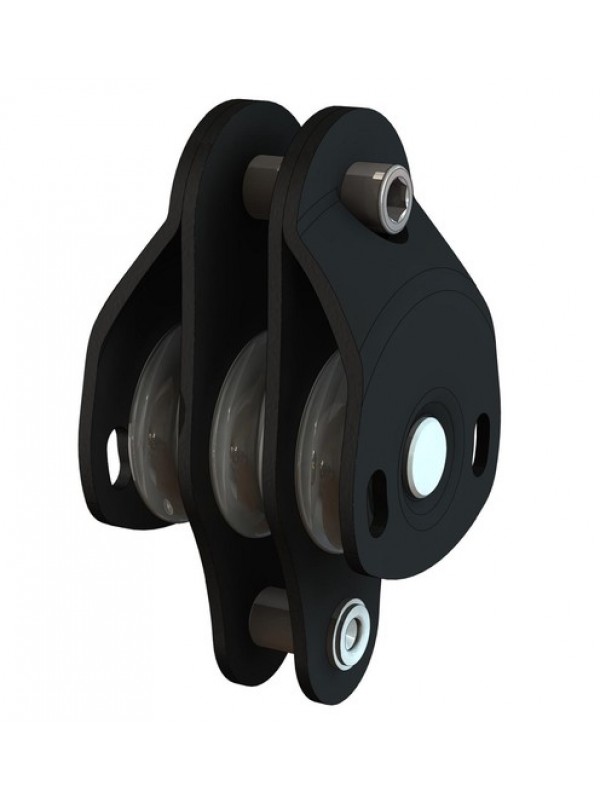 В блоке используется три независимых ролика большого диаметра смонтированных на одной оси и установленных на закрытых шарикоподшипниках, что делает его идеальным выбором для подъёма тяжёлых грузов и наведения полиспастов. Щёчки изготовлены дюралюминиевого сплава, ролики - из стали.
