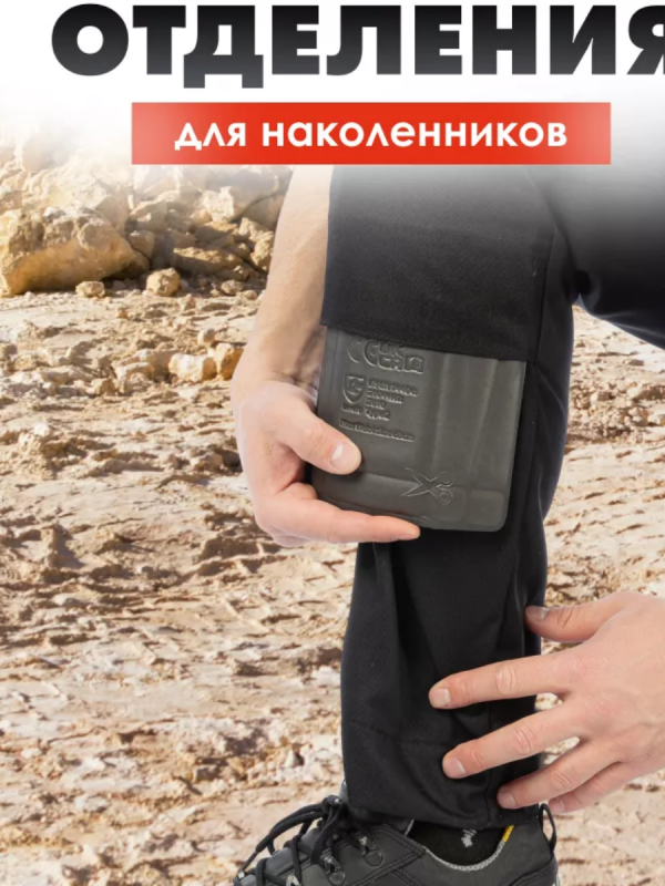 Элементы Регулировка по низу брюк Удлинение брюк на 5 см Задние карманы Карман на бедре Резинка на поясе Отделения для наколенников Усиление коленей Светоотражающие элементы