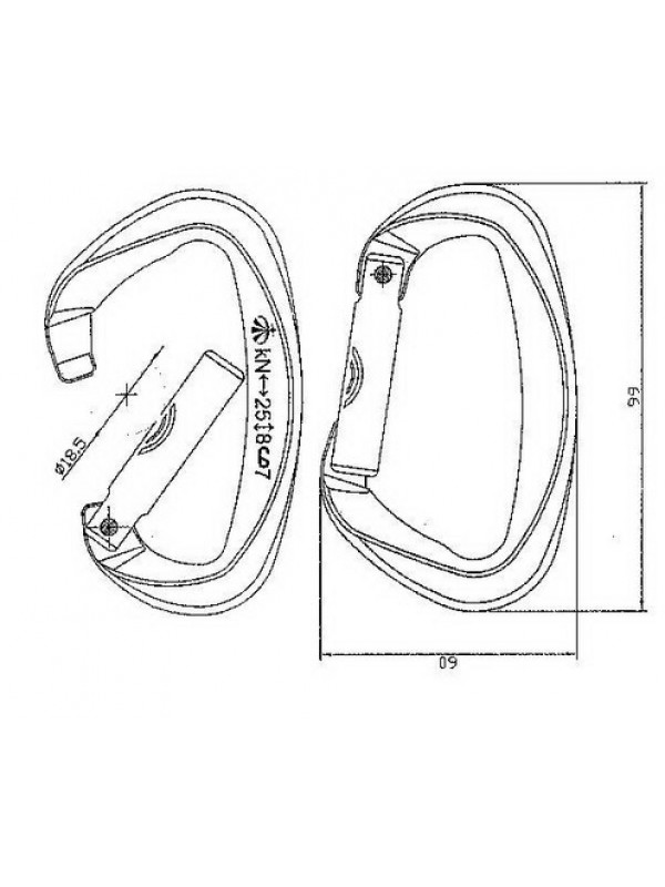 ХАРАКТЕРИСТИКИ: Размеры, мм - 60*99 Вес, г - 56 Форма карабина - ассиметричная Мах нагрузка в продольном направлении, kN - 22 Max продольная нагрузка с открытой защёлкой, kN - 8 Нагрузка в поперечном направлении, kN - 8 Ширина раскрытия, мм - 18,5 Сертификат ГОСТ-Р