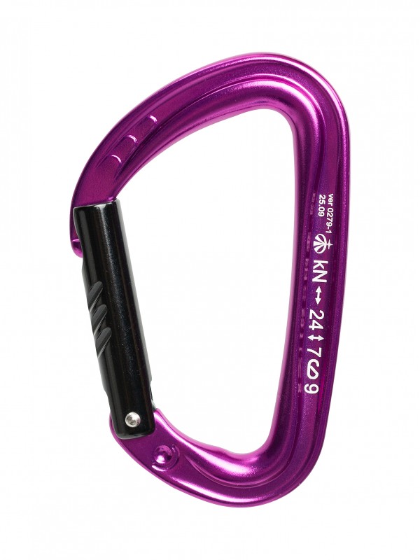 Легкий алюминиевый карабин без муфты с прямой защелкой. Используется для комплектования скалолазных оттяжек, и в ситуациях, при которых важна скорость вщелкивания. Применяется в скалолазании, альпинизме, спортивном туризме и спелеологии. Увеличена площадь зоны контакта с веревкой или анкерной точкой для повышения износостойкости карабина. Тип защелки Keylock облегчает выщелкивание. Широкое раскрытие обеспечивает удобство использования карабина.