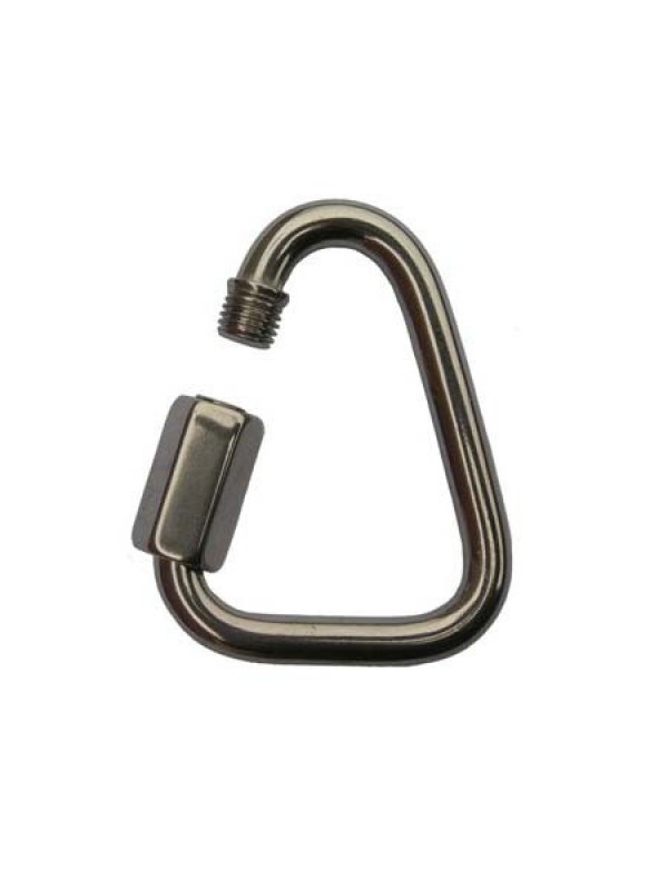 Соединительный элемент треугольной формы с резьбовым замком. Применяется в промышленном альпинизме, туризме, спелеологии. Форма карабина позволяет нагружать его по трем осям. Удобен для стационарного или длительного соединения элементов. Для предотвращения самопроизвольного открытия замка карабина требуется его полностью закрутить и затянуть.