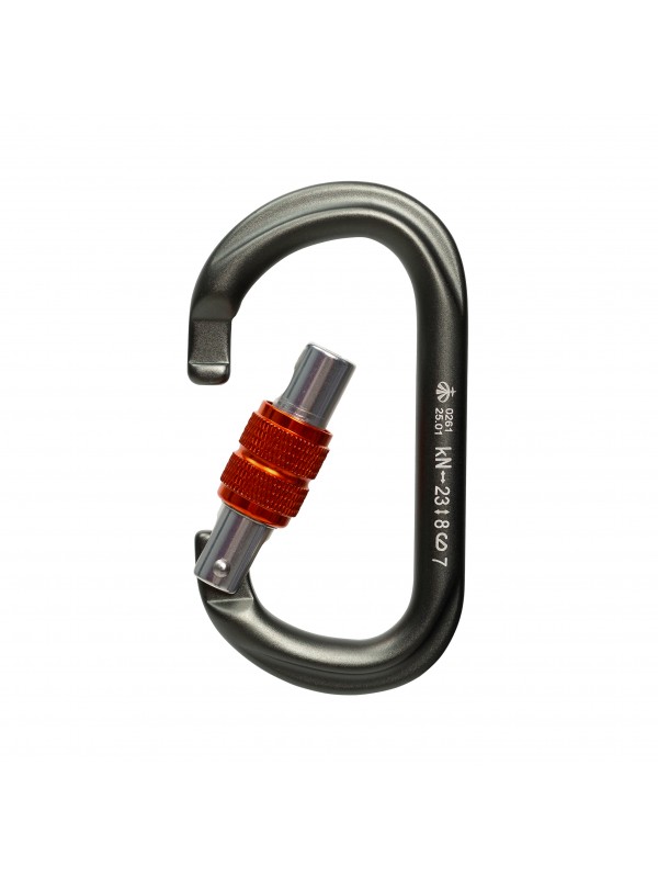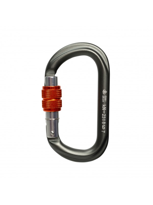 Алюминиевый карабин с винтовой муфтой. Используется в альпинизме, туризме и спелеологии. Симметричная форма карабина исключает отклонение от основной оси при нагрузке, что особенно важно при работе с блок-роликами, устройствами с подвижными щечками или широким сечением. Тип защелки "keylock" облегчает выщелкивание, винтовая муфта максимально снижает риск самопроизвольного раскрытия карабина.