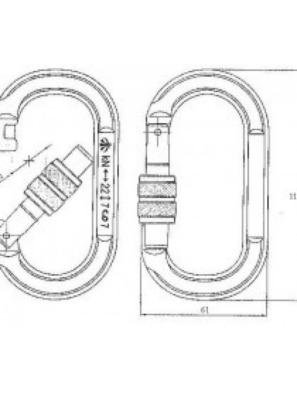 Размеры, мм - 61*110 Вес, г - 75 Форма карабина - овальная Тип защёлки - с резьбовой муфтой Форма защёлки - прямая Мах нагрузка в продольном направлении, kN - 22 Max продольная нагрузка с открытой защёлкой, kN - 7 Нагрузка в поперечном направлении, kN - 7 Ширина раскрытия карабина, мм - 16 Сертификат EAC.