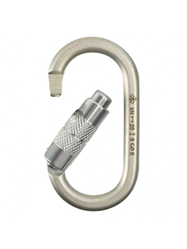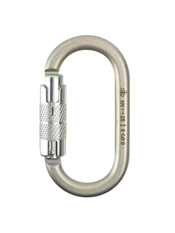 Стальной карабин овальной формы. Может применяться для организации самостраховки, станций, присоединения страховочных устройств и т.д. Симметричная форма карабина исключает отклонение от основной оси при нагрузке, что особенно важно при работе с блок-роликами и устройствами с двумя симметричными щечками. Тип защелки "keylock" облегчает выщелкивание, автоматическая муфта ускоряет работу с карабином. Может использоваться в скалолазании, альпинизме, спелеологии . Стальной карабин обладает высокой износостойкостью.