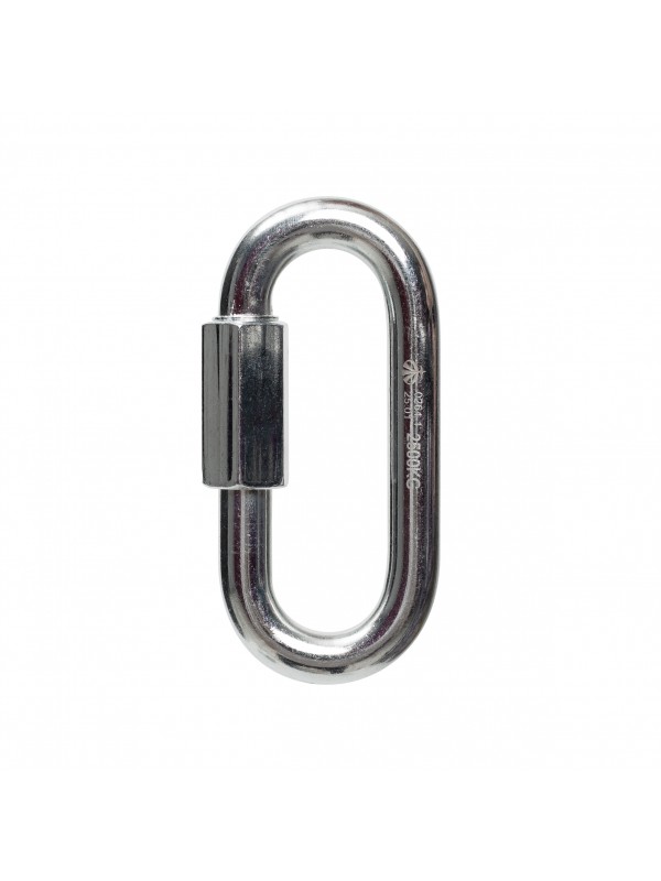 Соединительный элемент овальной формы с резьбовым замком. Применяется в промышленном альпинизме, туризме, спелеологии. Удобен для стационарного или длительного соединения элементов. Для предотвращения самопроизвольного открытия замка карабина требуется его полностью закрутить и затянуть.