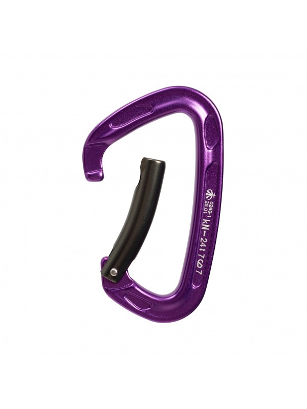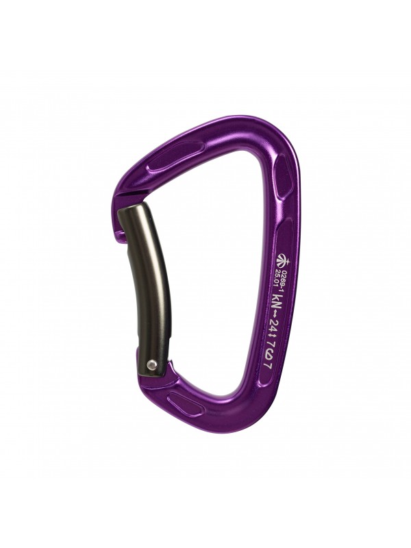 Легкий алюминиевый карабин без муфты с изогнутой защелкой. Используется для комплектования скалолазных оттяжек, и в ситуациях, при которых важна скорость вщелкивания. Изогнутая защелка облегчает вщелкивание веревки в карабин. Применяется в скалолазании, альпинизме, спортивном туризме и спелеологии. Увеличена площадь зоны контакта с веревкой или анкерной точкой для повышения износостойкости карабина. Тип защелки Keylock облегчает выщелкивание. Широкое раскрытие обеспечивает удобство использования карабина.