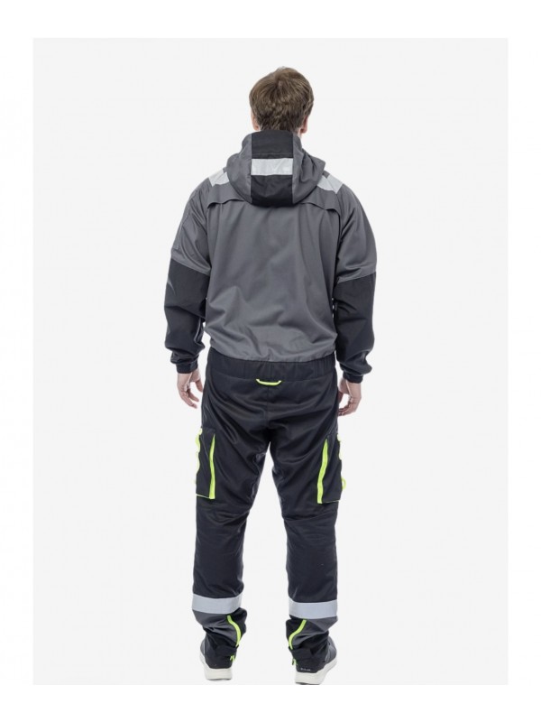 кармана на бёдрах, лента для крепления инструментов ·Манжеты рукавов на резинке ·Расширения на молниях внизу штанин для быстрого
