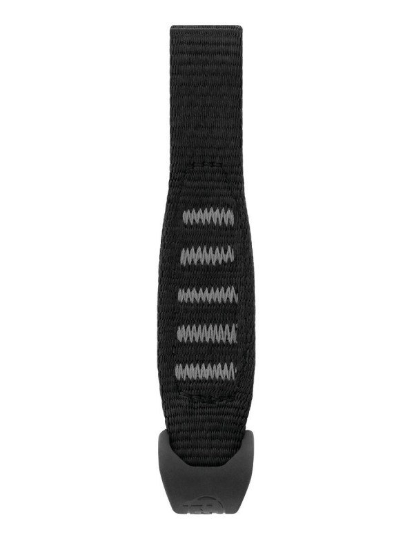Сторона стропы, в которую нужно устанавливать карабин с гнутой защелкой (нижняя часть, для установки веревки) снабжена фиксатором STRING. Он стабилизирует карабин и защищает стропу от износа.