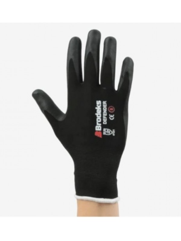 Рабочие перчатки с нитриловым покрытием Brodeks Defender G-21 - тонкие и очень эластичные перчатки, хорошо облегающие руки и обеспечивающие свободу движений ладони.