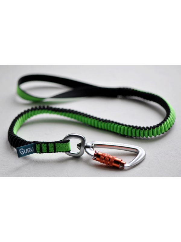 GURU ACCIO+ с карабином Typhoon Swivel-D TWL V2 - выполнена из эластичной ленты, с прошитой петлей по центру, что при отсутствии нагрузки обеспечивает ее компактность и низкую вероятность создания помех пользователю при его перемещении, что увеличивает мобильность и удобство при выполнении работ. В случае падения инструмента лента вытягивается, опуская оборудование ниже ступней пользователя и снижая риск получения травмы.