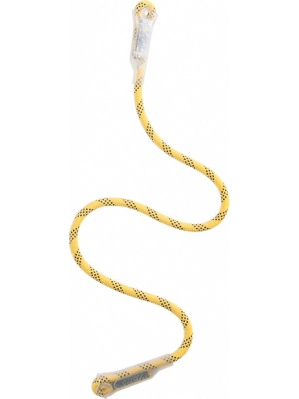 Ус выполнен из полиамидной веревки диаметром 10-11 мм. Ус легко встегивается при помощи карабина в обвязку. Размер петель рассчитан таким образом, чтобы зафиксировать положение карабина. Благодаря новой технологии зашивки веревки, петли на веревочных самостраховках прочнее привычных узлов. Прошивка защищена пластиковым протектором, предохраняющим сшивку от истирания.