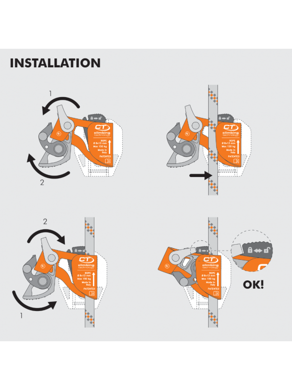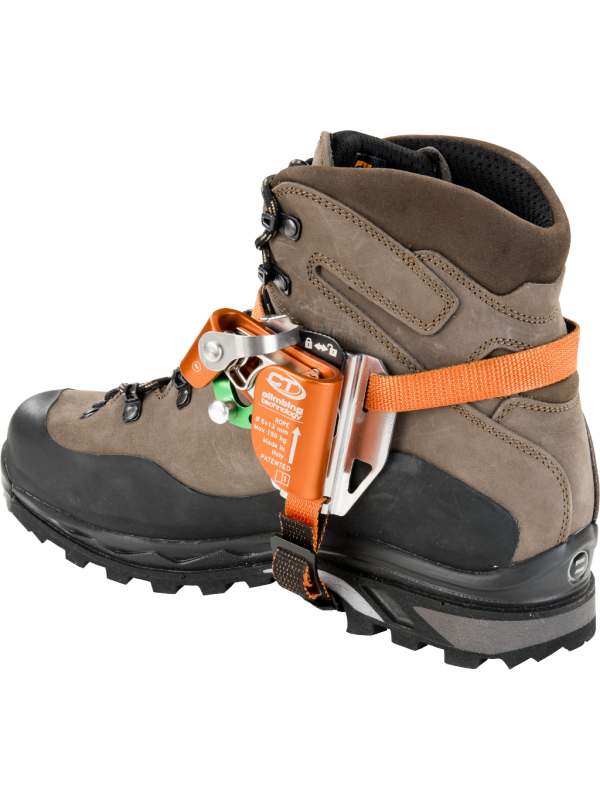 Эта опора позволяет пользователю подниматься по веревке, не снимая кошки для лазания по деревьям. Это ускоряет маневры, поскольку пользователю не нужно постоянно снимать и надевать кошки, чтобы переключиться из режима лазания по деревьям в режим лазания по веревке. Положение фиксирующего кулачка можно легко отрегулировать в обоих направлениях в соответствии с потребностями пользователя.
