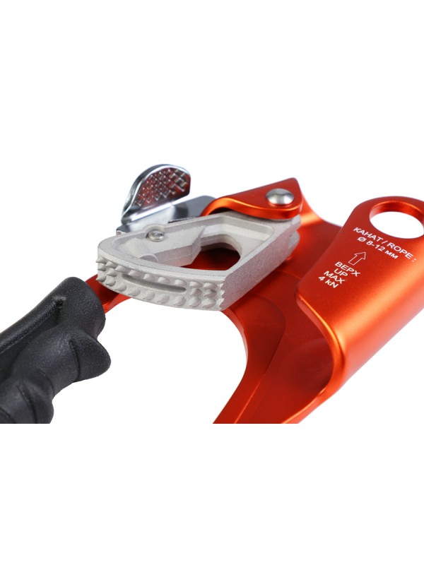 замерзшей веревке. Защелка кулачка снабжена насечками для комфортной работы в