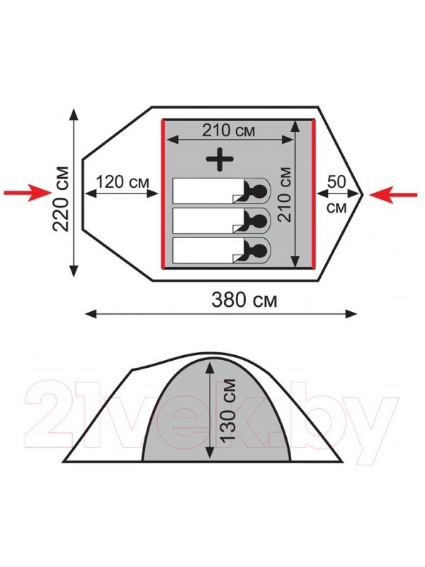 - Внешний тент водостойкий, с двумя вентиляционными клапанами.