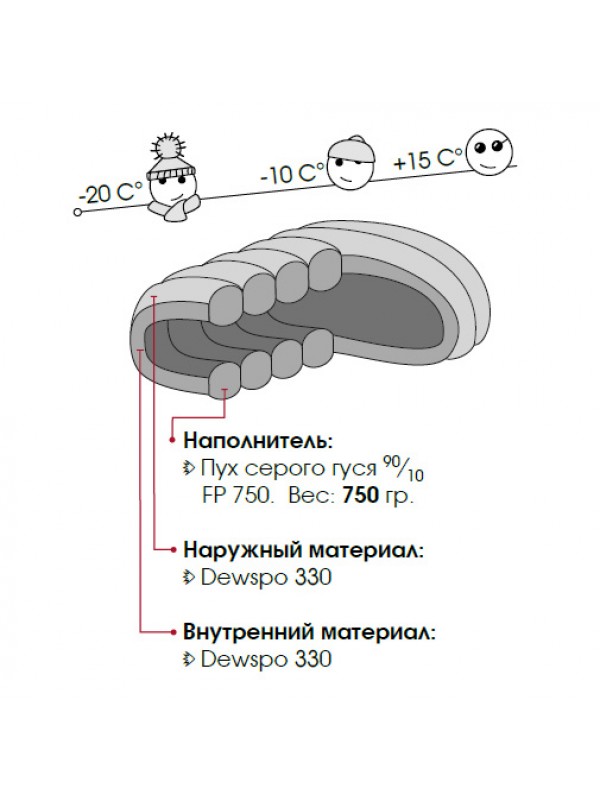 FP состовляет не менее 700. FP (Fill Power) — упругость с которой возвращается