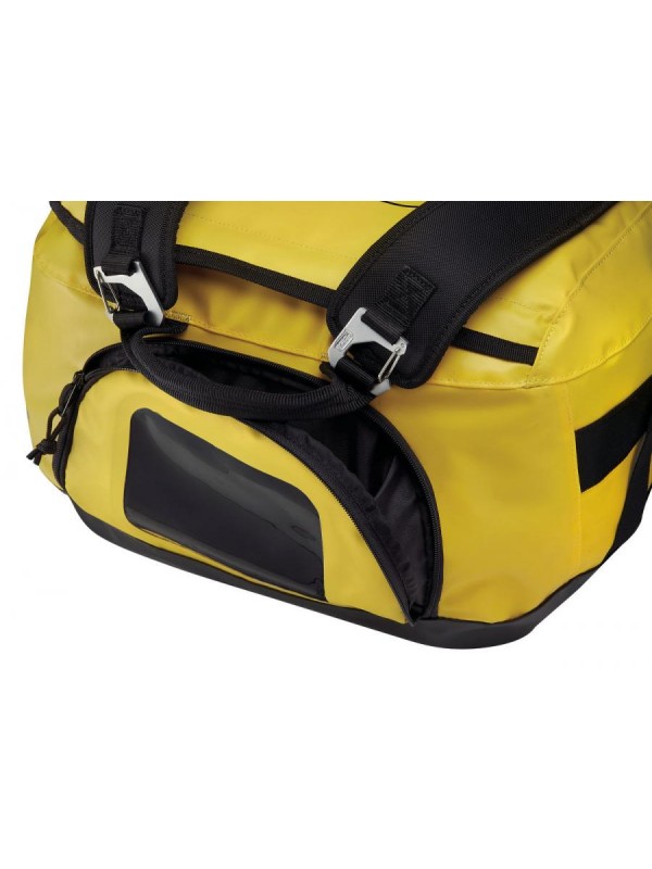 Баул DUFFEL 65 сконструирован так, чтобы его можно было переносить различными способами. Это эргономичная и удобная сумка объемом 65 литров. На спине и лямках установлены элементы комфорта для удобства при транспортировке в режиме рюкзака. Лямки при необходимости можно снять. Он широко открывается и можно быстро добраться до всего оборудования, расположенного в бауле. Есть два кармана, расположенные во внутреннем клапане, и еще один большой карман для обуви или каски. Большая прозрачная область для размещения информации о пользователе (например, туда можно положить визитку). Баул изготовлен из высокопрочного брезента TPU и предназначен для интенсивного использования.