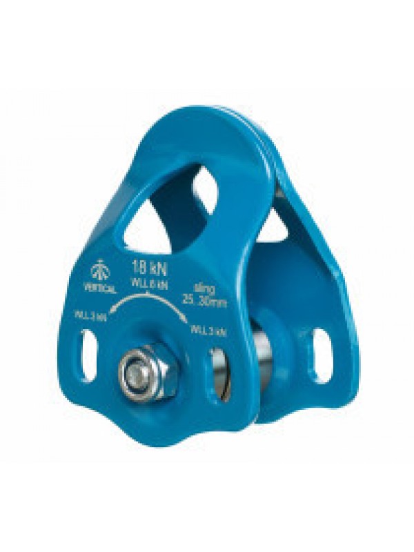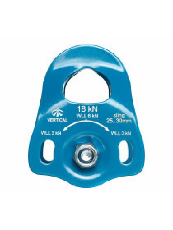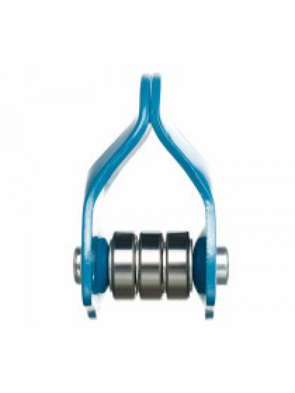 Блок-ролик для стропы. Применяется для перемещения груза или человека по натянутой стропе. Может применяться в полиспастной системе c использованием плоской стропы. Нагрузка на ролик не должна превышать допустимой рабочей нагрузки - 6 кН. Для строп шириной 25-30 мм