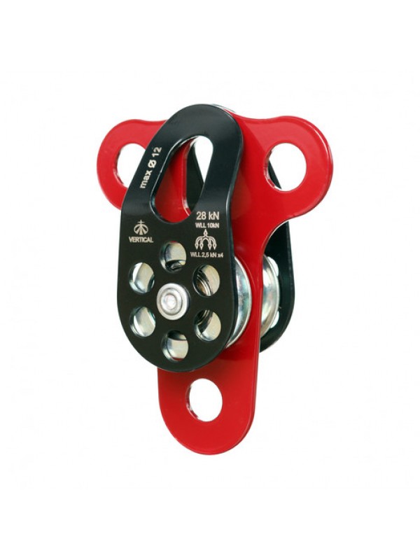 Блок-ролик двойной стальной с подшипником - предназначен для использования в полиспастных системах. Допускает использование как одинарной, так и двойной веревки. Выпускается с подшипником. Имеет третью разделительную щеку с нижним отверстием под карабин, и тремя верхними отверстиями. Дополнительные отверстия позволяют присоединить еще одни или два ролика, зажим в качестве блокиратора обратного хода или закрепить конец веревки, участвующей в полиспастной системе. Также можно объединять ролики для передвижения грузов по двойным горизонтальным перилам.