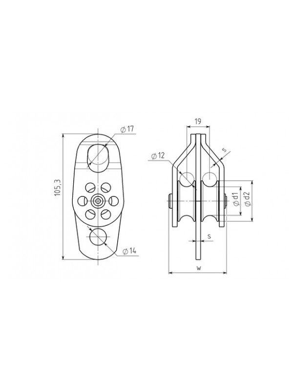 Блок-ролик двойной стальной с подшипником - предназначен для подъема и спуска грузов, натяжения перил и создания полиспастов. Ролик выполнен из нержавеющей стали, что делает его более износостойким. Допускает использование как одинарной, так и двойной веревки. Выпускается только с подшипником. Имеет третью разделительную щеку с нижним отверстием под карабин. Работает с веревкой и тросом диаметром до 12 мм. сертификат ГОСТ Р.