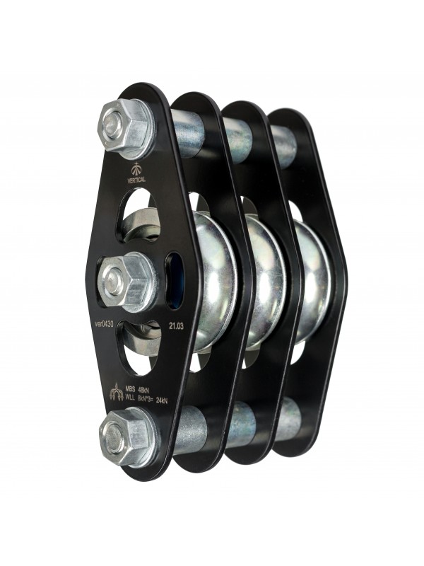 Относительно компактный блок-ролик повышенной прочности для создания полиспастных систем. Предназаначен для работы с тяжелыми грузами.
