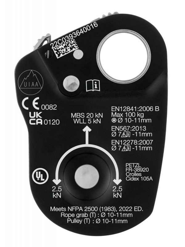 - открывающаяся боковая пластина позволяет легко установить веревку, когда ролик соединен с анкером, что снижает риск потери устройства