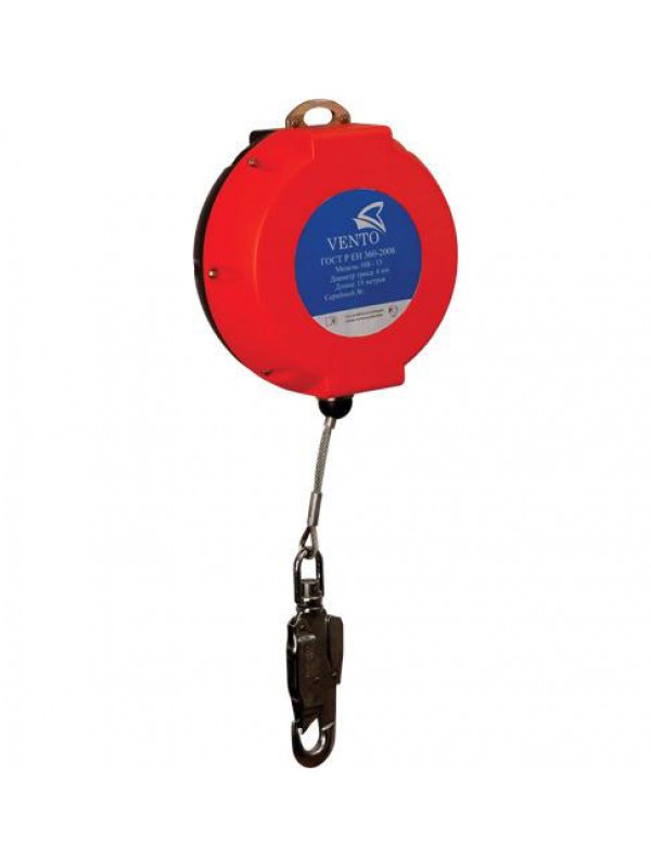 Оптимально подходит для эксплуатации в сложных условиях, в местах, где возможен контакт с агрессивными химическими веществами, при проведении сварочных работ или при использовании обрезного инструмента. Механизм защищен корпусом из композитного противоударного пластика. По мере необходимости трос свободно выдается из устройства и автоматически наматывается обратно. При резком увеличении скорости вытягивания стропы (при срыве) срабатывает функция торможения, прекращающая падение пользователя. Карабин на конце троса имеет вертлюг для предотвращения перекручивания стропы. Индикатор срыва находится на вертлюге. «НВ-10» комплектуется шнуром для вытягивания ленты, карабином «Стальной Овал» и фалом крепежным для организации точки крепления. Устройство поставляется в специальной сумке для хранения и переноски. Характеристики Масса, г: 7300 Длина ленты,м: 10 Диаметр троса, мм: 4 Раскрытие карабина,мм: 21 Размер корпуса, мм: 193*18*103