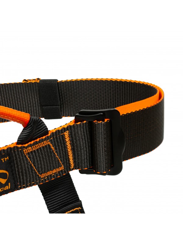 Контрастный цвет строп (черный с одной стороны и оранжевый с другой), упрощает надевание беседки и контроль со стороны инструктора или тренера.