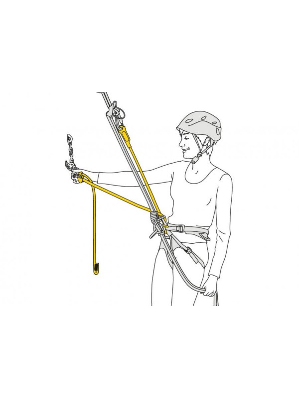 - присоединяется к страховочной системе простым схватывающим узлом