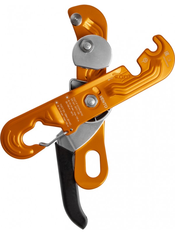 жумаром. Предназначено для работы с одной веревкой. Движение по веревке возможно только при нажатии рукояти. Конструкция предусматривает автоматическую остановку в случае прекращения