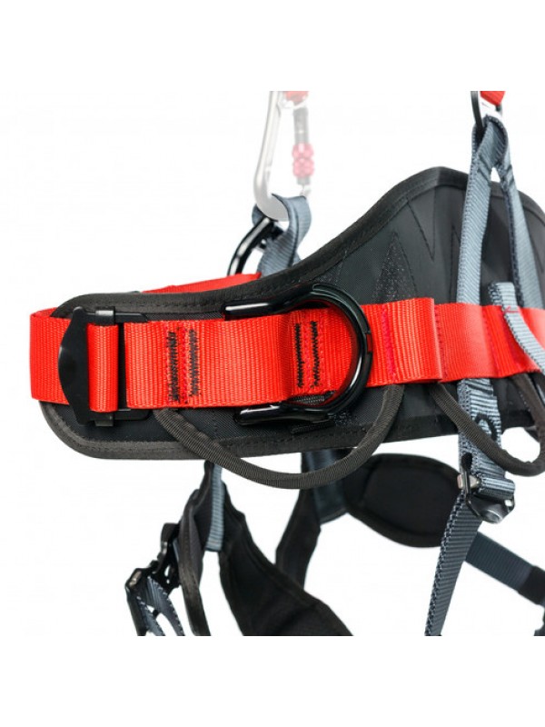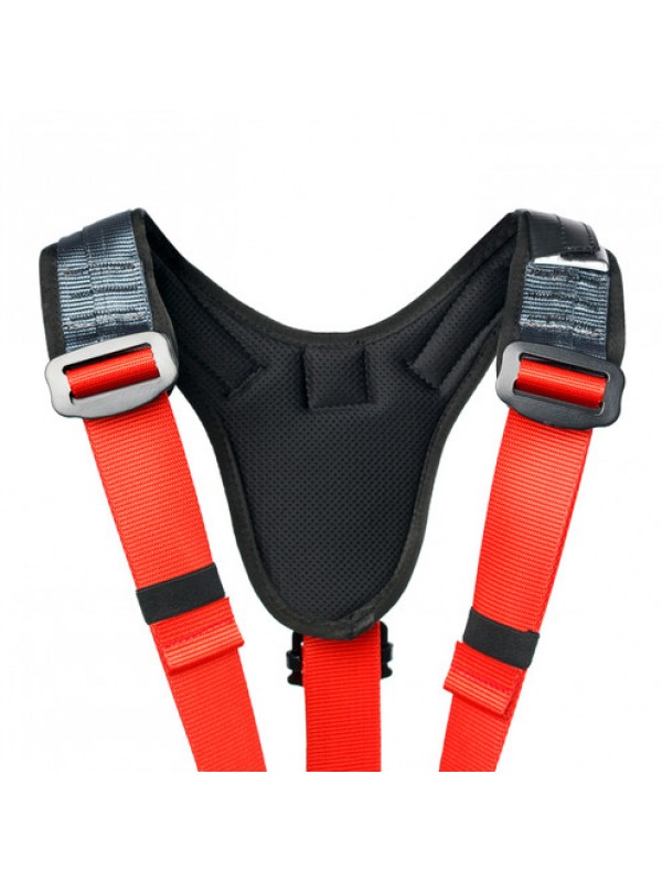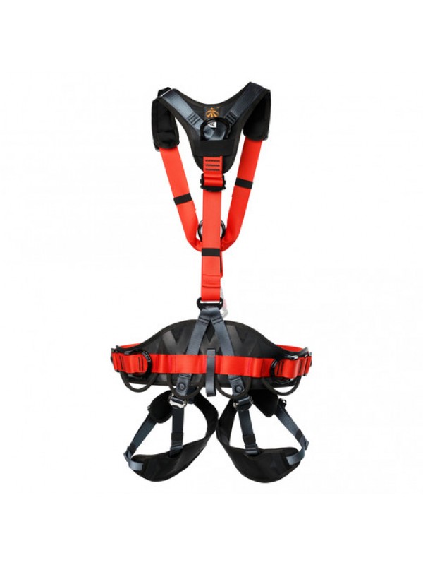 Страховочная привязь предназначена для защиты от падения с высоты и позиционирования в рабочем положении. Разъемные пряжки на ножных обхватах облегчают процесс надевания и снимания системы. Быстро регулируемые пряжки на поясе и плечевых лямках позволяют легко подогнать систему под нужный размер. Страховочная привязь имеет 5 точек прикрепления: точка спереди на поясе для средств позиционирования, две страховочные точки А (на груди и на спине), 2 боковые точки для позиционирования. Возможность интеграции грудного зажима. Широкий эргономичный пояс и ножные обхваты имеют вентилируемую конструкцию. Наплечные лямки с дополнительными накладками широко раздвинуты, что обеспечивает комфорт при работе и не натирают шею. Сзади наплечные лямки присоединяются к поясному обхвату одной стропой через быстро регулируемую пряжку, что позволяет легко отрегулировать систему по высоте одной рукой. Система имеет 4 развесочные петли для снаряжения и инструментов, и два крепления для карабинов Caritool Выпускается в двух размерах Система не укомплектована карабином.