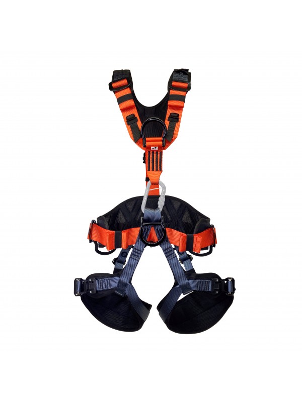 Страховочная привязь предназначена для защиты от падения с высоты и позиционирования в рабочем положении. Разъемные пряжки на ножных обхватах облегчают процесс надевания и снимания системы. Быстро регулируемые пряжки на поясе и плечевых лямках позволяют легко подогнать систему под нужный размер. Страховочная привязь имеет 5 точек прикрепления: точка спереди на поясе для средств позиционирования, две страховочные точки А (на груди и на спине), 2 боковые точки для позиционирования. Возможность интеграции грудного зажима. Широкий эргономичный пояс и ножные обхваты имеют вентилируемую конструкцию. Наплечные лямки с дополнительными накладками широко раздвинуты, что обеспечивает комфорт при работе и не натирают шею. Сзади наплечные лямки присоединяются к поясному обхвату одной стропой через быстро регулируемую пряжку, что позволяет легко отрегулировать систему по высоте одной рукой. Система имеет 4 развесочные петли для снаряжения и инструментов, и два крепления для карабинов Caritool Выпускается в двух размерах Система не укомплектована карабином.