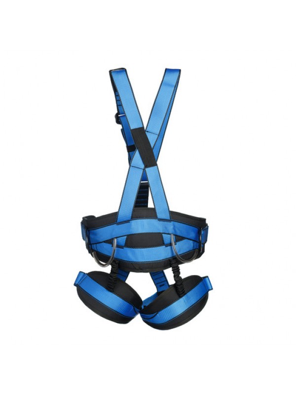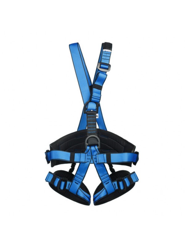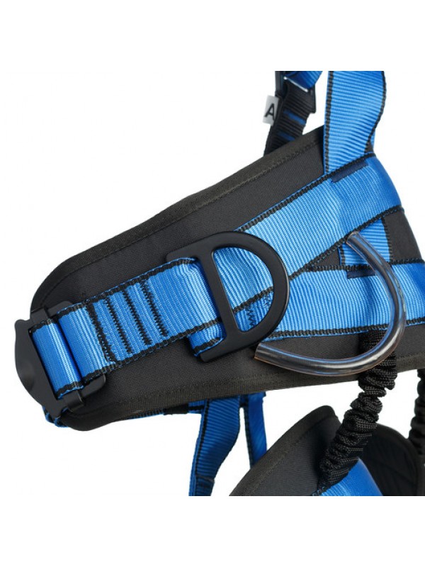 Страховочная привязь имеет 4 точки прикрепления: страховочная точки А на груди, 2 боковые точки для позиционирования, брюшная точка D.
