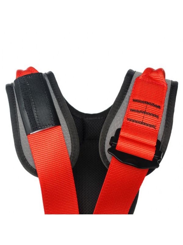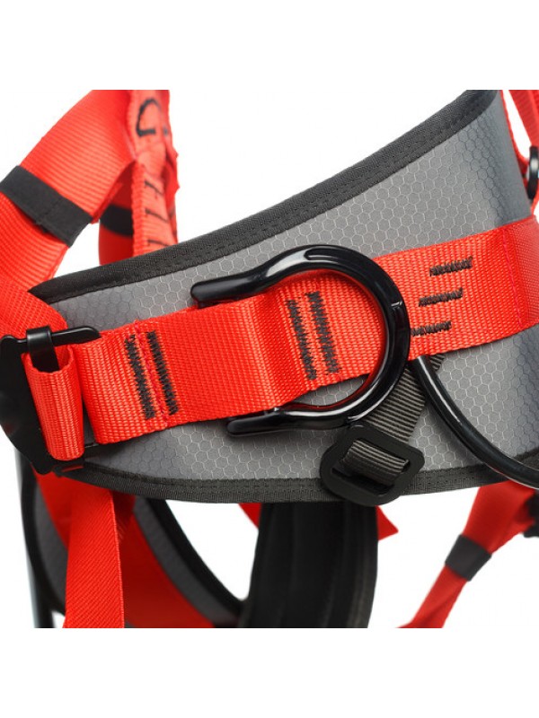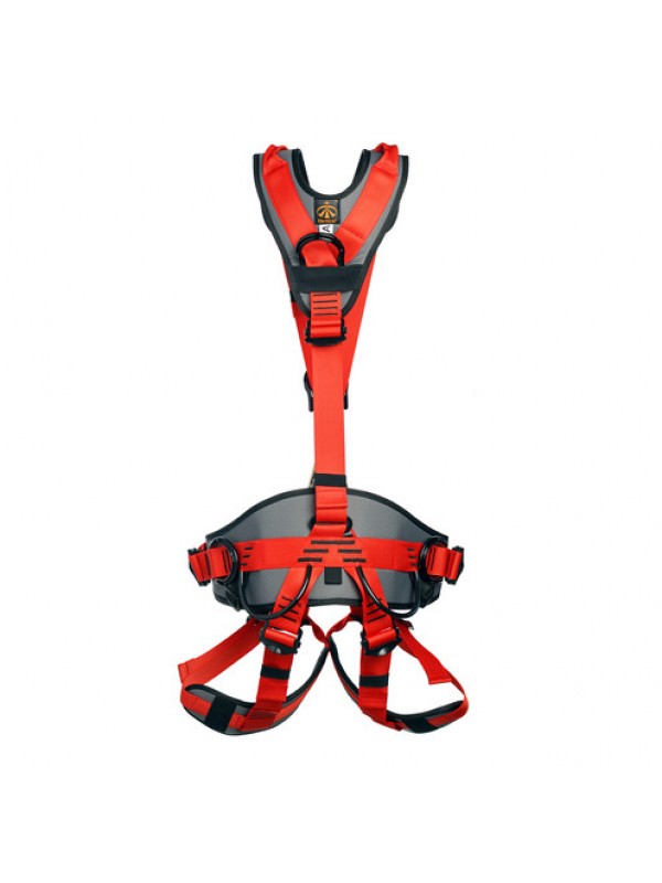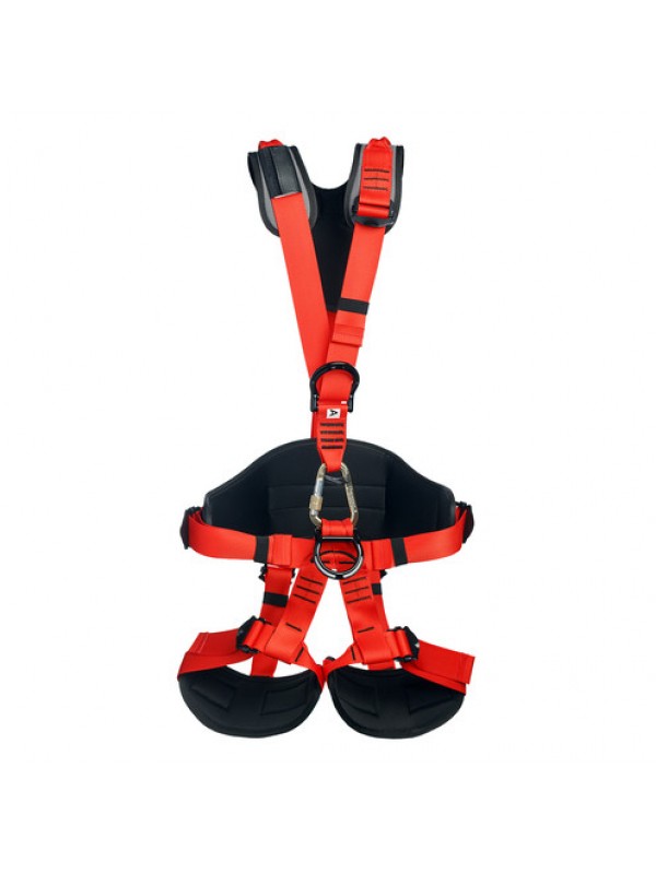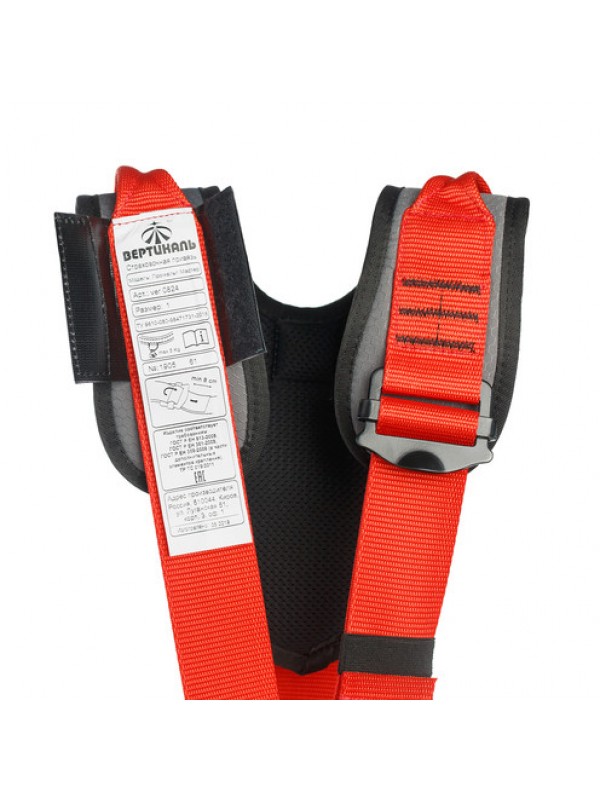 Страховочная привязь предназначена для защиты от падения с высоты и для позиционирования в рабочем положении. Страховочная привязь имеет 5 точек прикрепления: две страховочные точки А (на груди и на спине), 2 боковые точки для позиционирования, брюшная точка. Широкий эргономичный пояс, плечевые и ножные обхваты с дополнительными накладками обеспечивают максимально комфортные условия работы на длительное время. Наплечные лямки с дополнительными накладками и широко раздвинуты, что обеспечивает комфорт при работе и не натирают шею. Сзади наплечные лямки присоединяются к поясному обхвату одной стропой через быстро регулируемую пряжку, что позволяет легко отрегулировать систему по высоте одной рукой. Быстро регулируемые пряжки позволяют легко отрегулировать систему под необходимый размер. Система имеет две разгрузочные петли для крепления снаряжения и инструмента. Две дополнительные точки крепления на плечевых лямках предназначены для вертикальной эвакуации в ограниченном пространстве. Две дополнительные пряжки на поясе позволяют присоединить Рабочее сиденье для Промальп Мастер, обеспечивающее комфорт при длительной работе в безопорном положении Система не укомплектована карабином