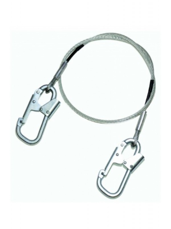 Строп из стального троса в защитной оболочке с двумя карабинами, используется как средство индивидуальной защиты от падения с высоты, может применяться как отдельная соединительная деталь, узел или компонент в системе с привязями и с анкерной точкой.