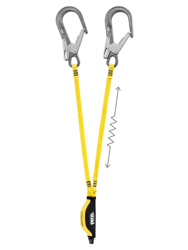 Поглощает энергию в случае падения: - постепенный разрыв амортизатора снижает энергию, приходящуюся на пользователя при падении - предназначено для пользователей весом от 50 до 130 кг - благодаря тому, что амортизатор срабатывает постепенно, он хорошо поглощает нагрузку в том числе для легких пользователей