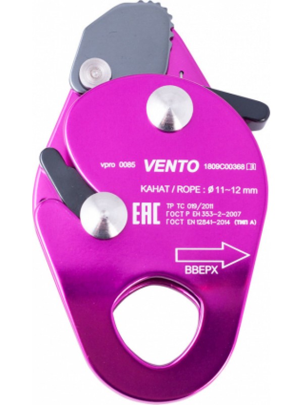Зажим перегибного типа. Работает в двух режимах: незакрепленный и фиксированный. При первом обеспечивается свободное движение по веревке/ канату вверх и вниз, при втором — устройство передвигает вверх пользователь.