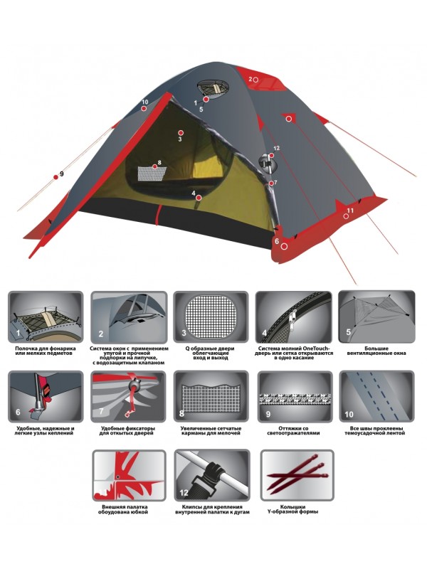 - Двухслойная палатка с двумя входами и двумя тамбурами