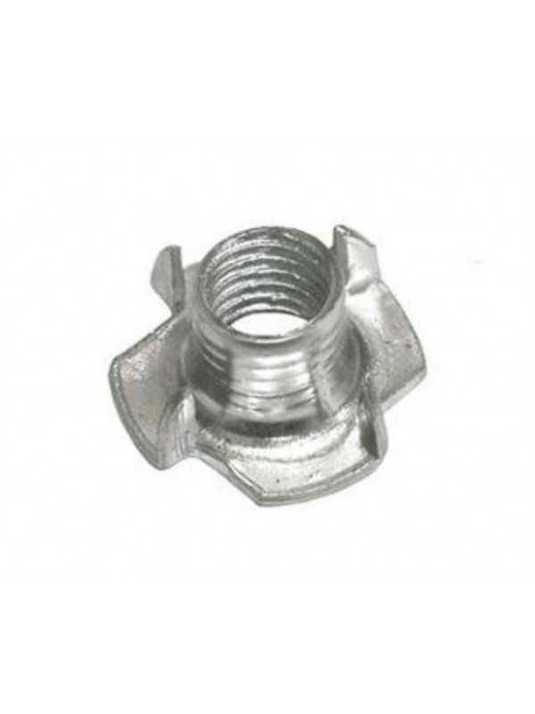 Забивная гайка-бульдог имеет специальные зубья, предотвращающие проворачивание, что позволяет производить монтаж с одной стороны. Перед установкой гайки необходимо просверлить отверстие. Резьба: метрическая, нормальная, класса точности (6Н). Материал: сталь С1008. Гайка покрыта белым цинком